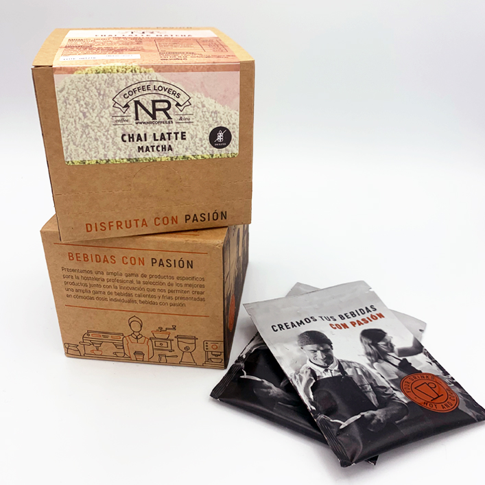 Recomendación de consumo: Verter el contenido del sobre en vaso de cristal, añadir 50ml de agua caliente, remover hasta diluir el producto. Añadir 150ml de leche emulsionada.